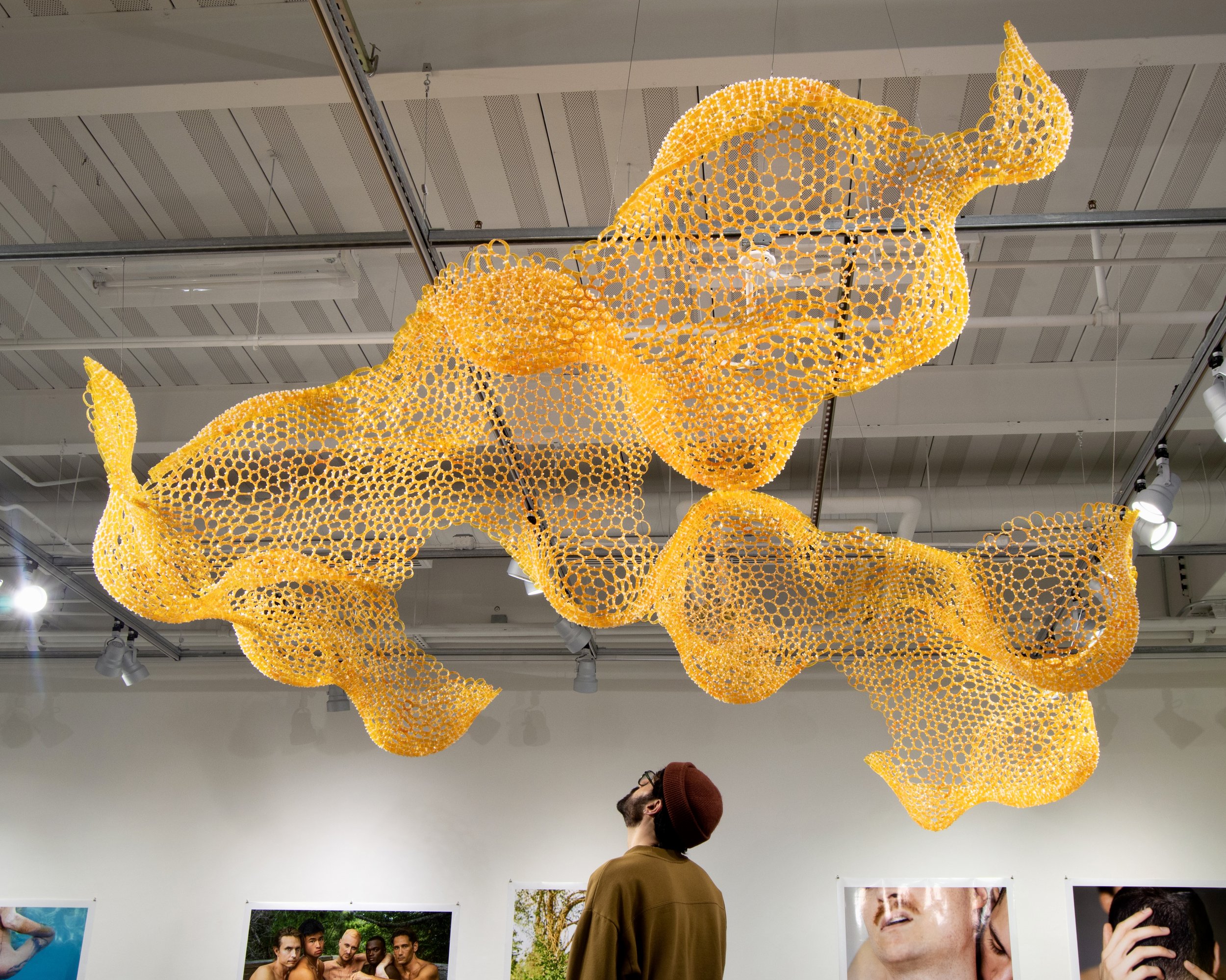 Crafted from over 10,000 prescription bottles collected across North America, over/medicated/under is an immersive installation that captures the intricate balance of mental health and medication. Towering at 6’8" the piece invites viewers to walk beneath its curving, organic forms, symbolic of neural networks and synaptic connections, suggesting the chemistry and interconnectedness of the mind. This reimagined landscape of everyday objects encourages reflection on both the lifesaving potential and the challenges of psychiatric medications.